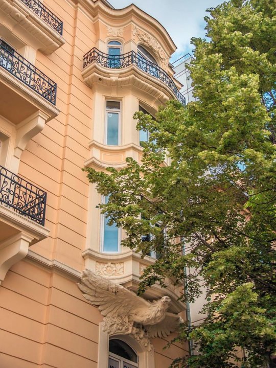 Има такива сгради, които ни показват колко точно е била красива Стара София. Една от сградите е тази. Построена като хотел през 1925 г., тя е била прехвърляна от различни стопани, народна власт и фирми до момент, в който главите на двата орела буквално висяха на арматурата. Преди 2 години тя бе надеждно реставрирана, а орлите й получиха нов живот.