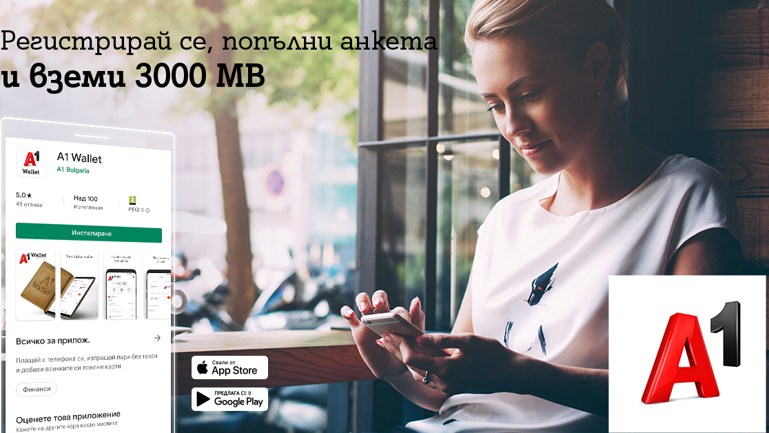 А1 ще даде 3000 МВ мобилен интернет на всеки нов потребител на приложението A1 Wallet, който попълни кратка анкета за дигиталния портфейл. След регистрация в A1 Wallet потребителите ще получават автоматичен мейл за успешна регистрация, в който ще бъде поместена кратка анкета, а след нейното попълване ще получат и ваучер за 3000 МB мобилен интернет с 30 дни валидност, съобщиха от А1.