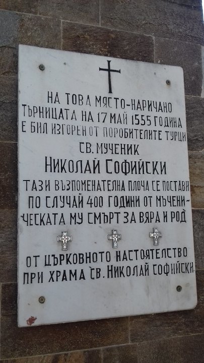 Св. Николай Нови Софийски е убит именно на това място на 17 май 1555 г. с камъни от развилняла тълпа, защото не е пожелал да предаде вярата си. Любопитно е, че неговият гроб е един от малкото известни гробове на български светци. През 70-те години на миналия век в негова чест там е построен малък параклис по проект на арх. Стефан Кънев. Въпреки че в началото на 20 в. мястото е запуснато и разпадащо се, преди няколко години настоятелите се захванаха с коренната му промяна. Покривът е ремонтиран, градината е оплевена, а чешмата е красиво облицована.