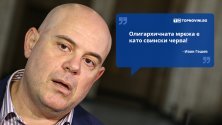 "Показваме на гражданите мрежата от зависимости между едър бизнес, политически зависимости на всички нива и какво ли още не и тази мрежа, прокуратурата има намерение да преустанови, поне докато аз съм главен прокурор. И пак казвам – компромиси няма да има за никой... Мрежата е ясна коя е. Това е като свински черва - дърпаш от единия край, появява се от другия край." Така главният прокурор Иван Гешев отговори на въпрос как би описал олигархичната мрежа, в която са замесени държавни институции.