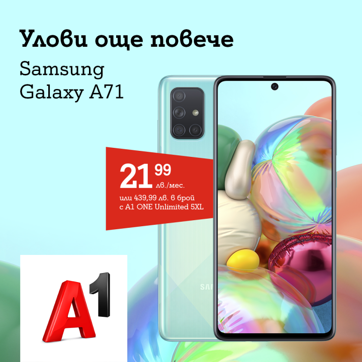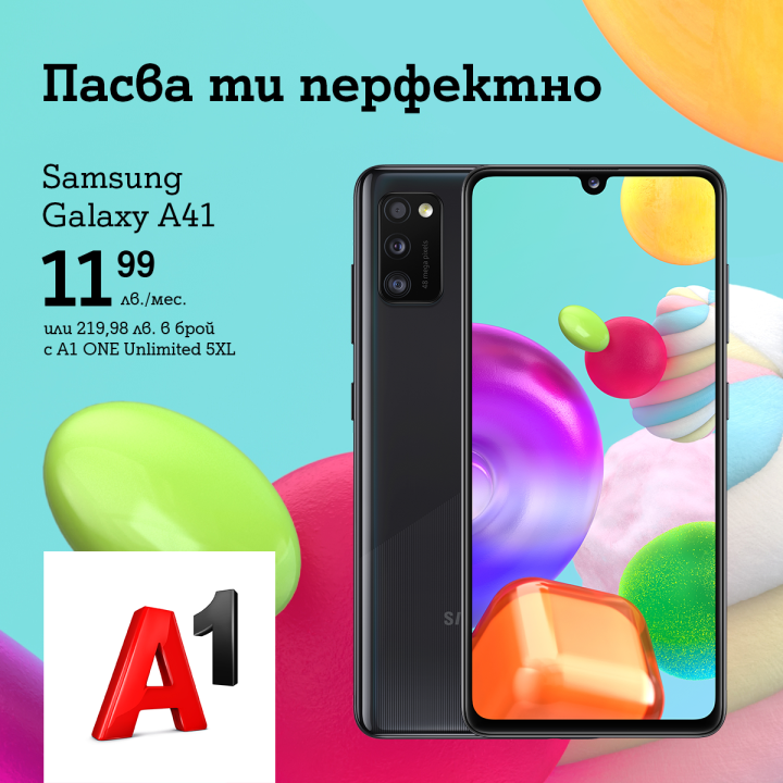 Това разпределение на натоварването щади батерията, оптимизира работата на устройство и помага на Samsung Galaxy A71 да се справи дори и с по-тежките приложения и видеоигри. Това е смартфон, който е на горната граница на средния клас, като в момента може да бъде закупен от А1 на цени, започващи от 21,99 лева на месец или 439,99 лева в брой, при покупка с тарифен план А1 One Unlimited 5XL. Samsung Galaxy A41 може да бъде открит в портфолиото на А1 на цени, започващи от 11,99 лева на месец или 219,99 лева в брой, отново в комбинация със същия тарифен план.