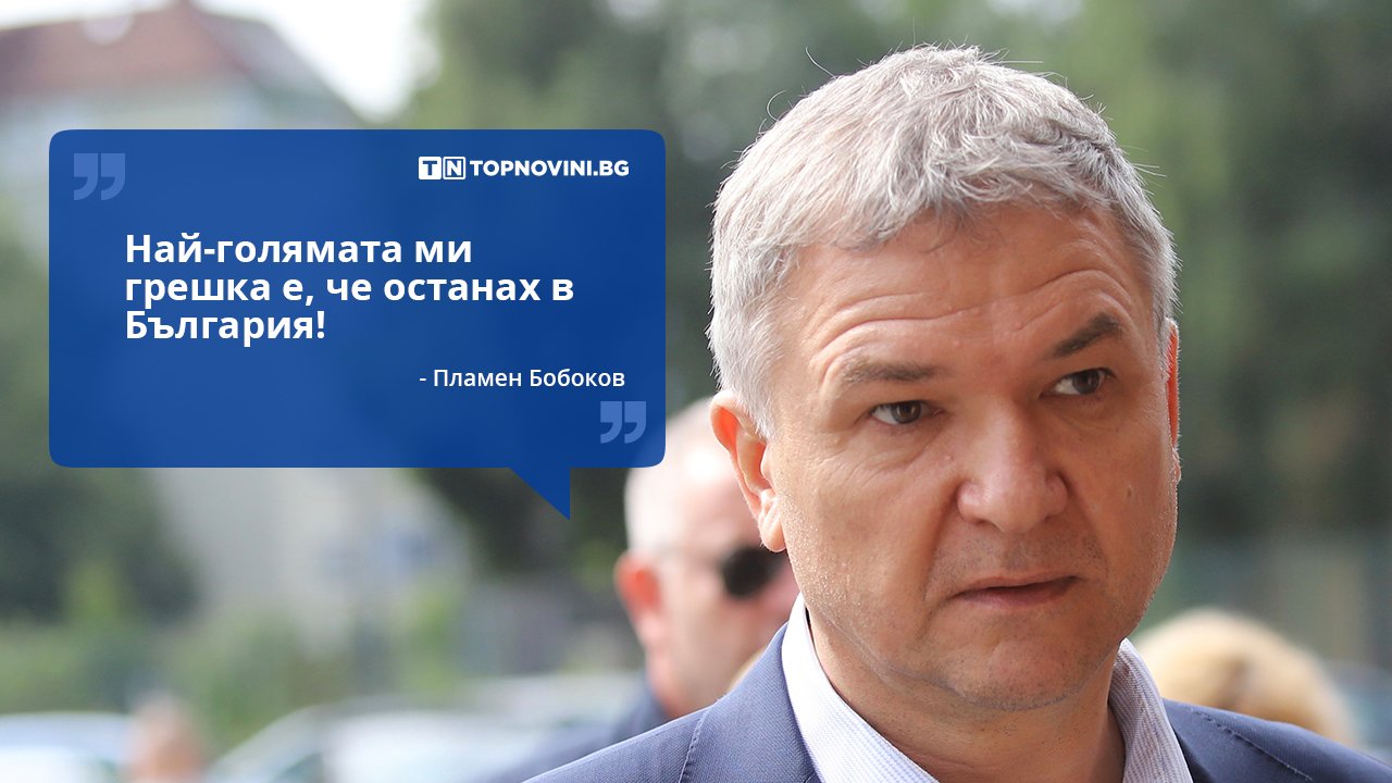 „Нищо не искам да правя в България. Изпитвам отвращение. Дълбока погнуса и отвращение..Най-голямата ми грешка е, че останах. Това не е моята България...Ние не сме последните...Като играе мечка в съседния двор, винаги идва и в твоя". Така бизнесменът Пламен Бобоков коментира разследването срещу него и брат му.