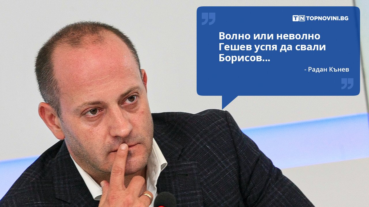 "Волно или неволно главният прокурор Иван Гешев успя да свали премиера Бойко Борисов. Гешев потъпка правовия ред в държавата с атакуването на президентската институция, а последвалите след това протести имат потенциал да свалят правителството". Така евродепутатът от ЕНП/"Демократична България" Радан Кънев коментира напрежението в обществото през последните дни.