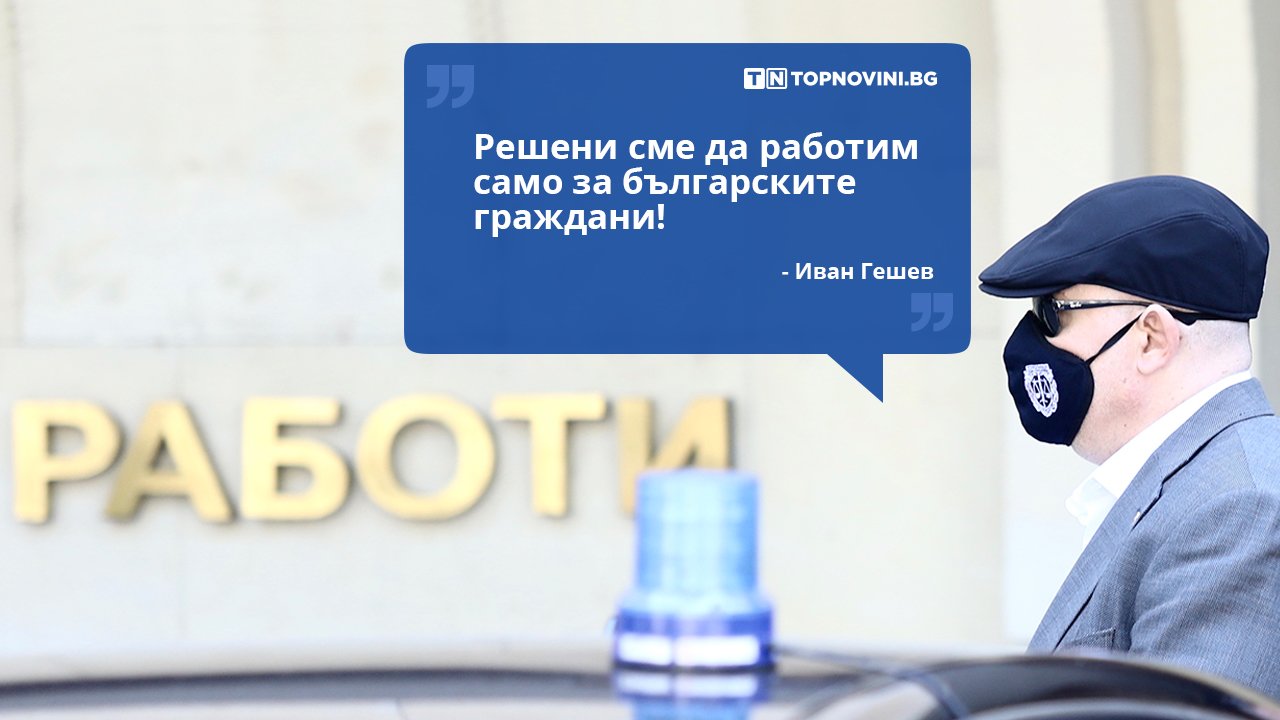 "Твърдо решени сме да работим само за българските граждани, независимо кой е извършил или за кого има данни или доказателства, че е извършил престъпление или нарушение на закона. Ще продължим да работим с еднакъв подход към всички. Това е единственинят начин да покажем на българските граждани, че има и е възможна спарведливост, а не че има недосегаеми хора, които са над закона, благодарение на това че имат политически връзки", заяви обвинител №1 Иван Гешев по време на брифинг за провеждащата се спецакция срещу битовата престъпност в Сливенско. Той припомни успехите на прокуратурата под негово ръководство и подчерта, че