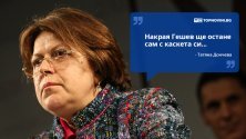 Не може да не можеш да прецениш трябва ли да влезеш в президентската институция по този начин. Какъв си ти, бе? За какъв се мислиш? Какво като си събрал 100 прокурори, на които плащаш заплати или определяш кариерата? Всичко е временно на този свят. Всеки прокурор, съдия или друг човек трябва да знае, че в един момент остава сам с това, което е свършил. Сам с каскета си." Коментар на лидера на ПП "Движение 21" Татяна Дончева по повод прокурорската акция в Президентството и последвалото политическо и обществено напрежение.