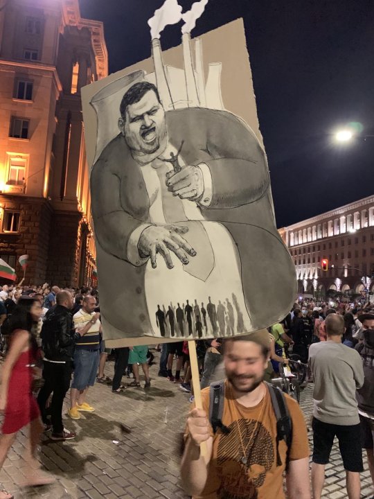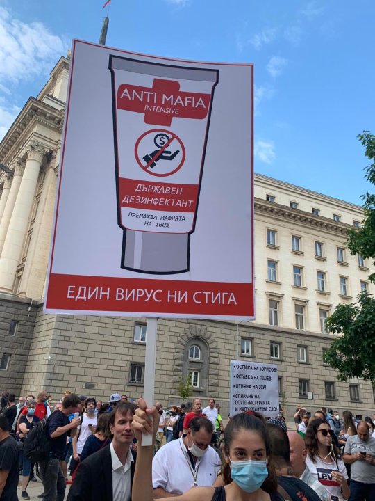 А трансперантът опънат на сградата на Народното събрание, уточняваше, че се продава.