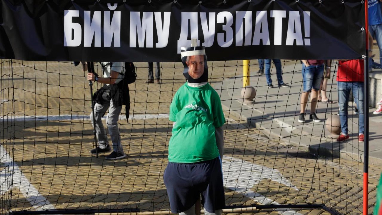 С всеки ден демонтрантите стават все креативни, а лозунгите и проявите им - по-интересни. Днес Триъгълникът на властта се превърна в импровизирано футболно игрище – с врата точно под прозорците на Министерски съвет и кукла, олицетворяваща премиера. Протестиращите се редуваха да бият дузпата един след друг в знак на протест.
