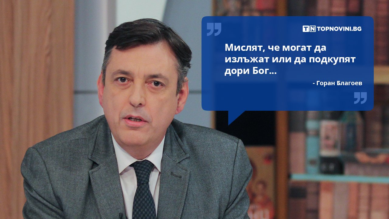 „Това са хора, които живеят с манталитета, че могат да купят всичко, че могат да подкупят всеки, че имат всепозволеност. Ерго - те могат и Бог да подкупят. Не защото съвестта ги гризе по някакъв начин. Виждаме примери с тайни снимки на спящи държавници, оръжия, чекмеджета с пачки с евро. Тук къде отива моралът и отношението към "Началника"? Аз не знам. Със сигурност не е според това, което казва Библията. Там има много примери точно на хора, които са се самозабравили и мислят, че могат да излъжат или да подкупят дори Бог. Рано или късно сметките им винаги се объркват." Това каза водещият на предаването "Вяра и общество" по БНТ Горан Благоев в коментар на отношението, което българските политици и вчастност премиерът Бойко Борисов демонстрират спрямо църквата и религията.