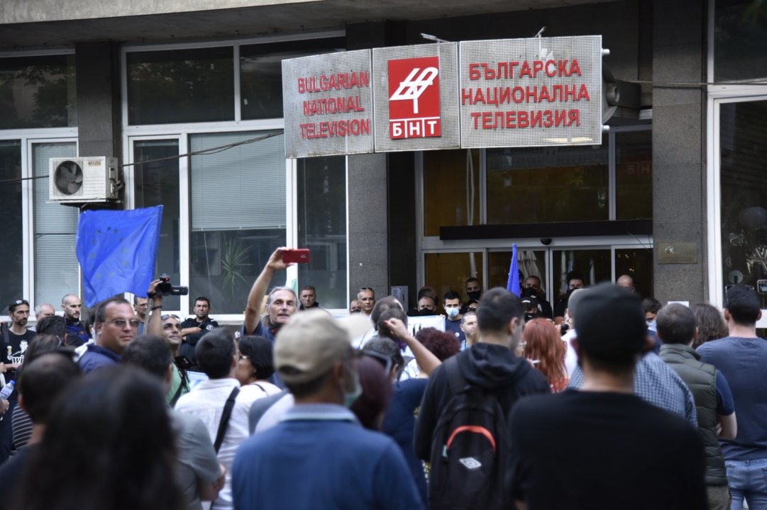 Стотици протестиращи блокираха входа на Българската национална телевизия. Те настояват за оставката на генералния директор на обществената медия Емил Кошлуков.