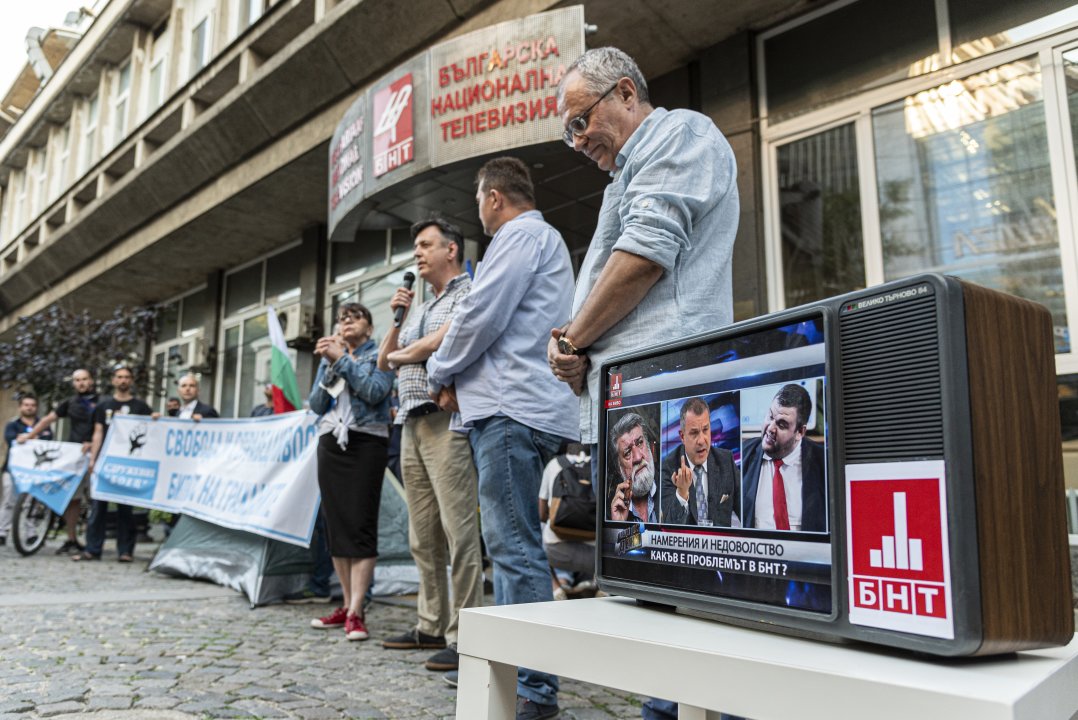 Протестиращи имаше и пред сградата на БНТ. Те настояваха за оставката на генералния директор на обществената медия Емил Кошлуков и заплашиха, че ще продължат да блокират входа на БНТ, докато Кошлуков не сдаде поста на генерален директор.
