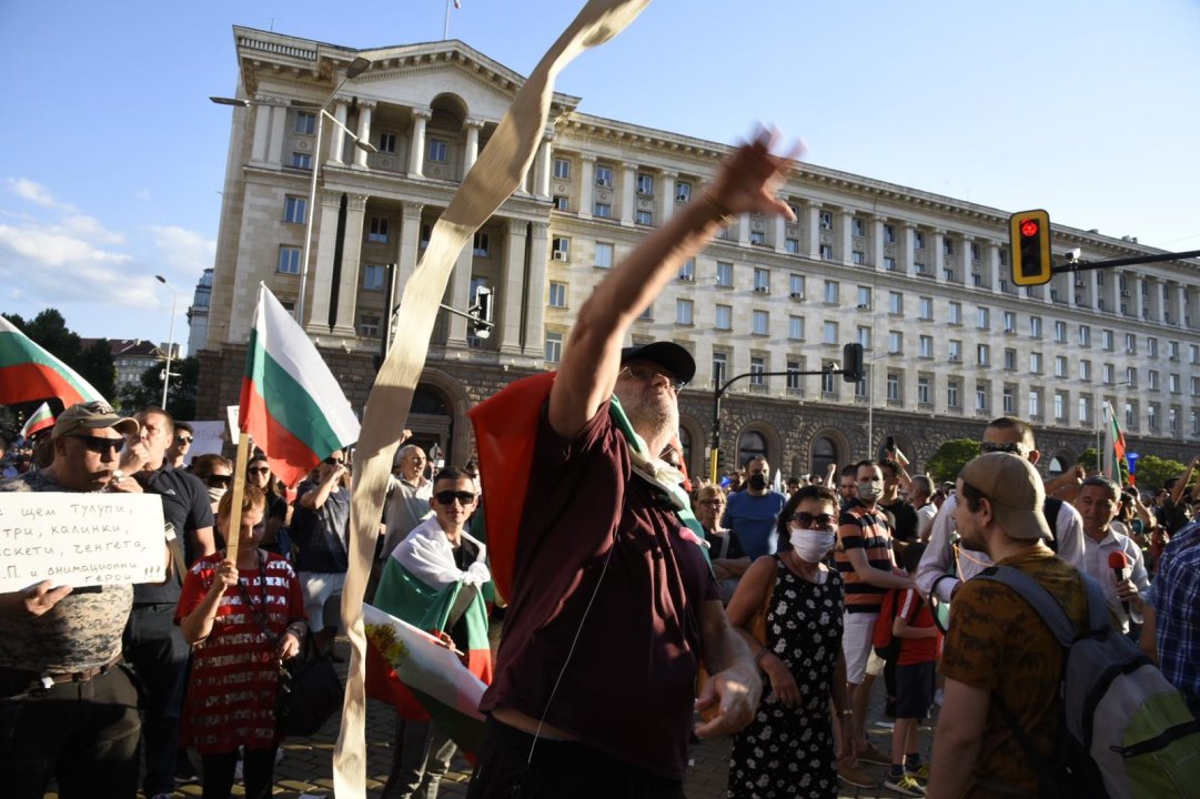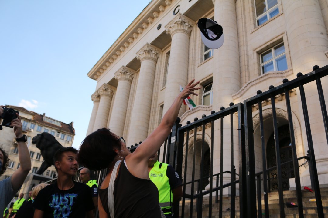 Преди това протестиращи се събраха пред Съдебната палата в София, за да изразят недоволството си към главния прокурор Иван Гешев. Те хвърлиха своите каскети към сградата на Съдебната палата. Хората искат справедлива съдебната система, ново обвинение и контрол над обвинител №1 и ограничаване на правомощията му.