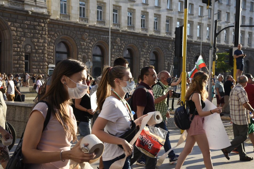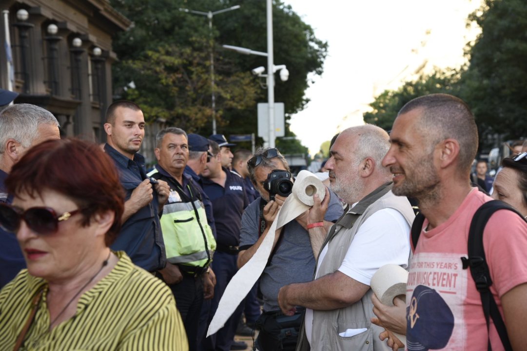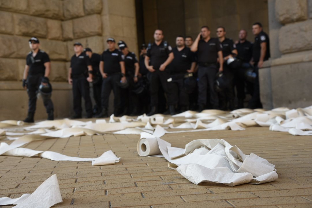 Традиционно протестът започна в Триъгълника на властта, където тази вечер недоволните хвърлиха тоалетна хартия пед сградата на Министерски съвет.