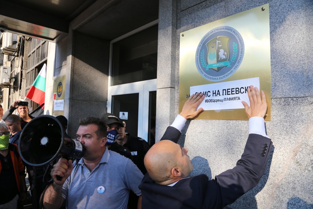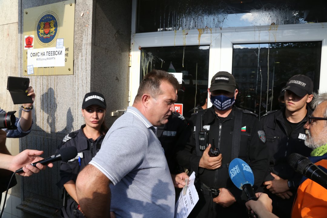 Протестиращите залепиха надписи "Офис на Пеевски" върху фасадата на сградата. По-късно освбодиха входа на Комисията, след като не бяха допуснати вътре. Яйца полетяха към фасадата на сградата.