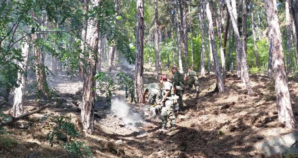 Двадесет военнослужещи от 3-ти механизиран батальон на 61-ва механизирана бригада продължават отстраняването на последствията от разразилия се пожар в местността „Триъгълника” над водопада „Сучурум” в град Карлово, съобщават от Министерство на отбраната.
