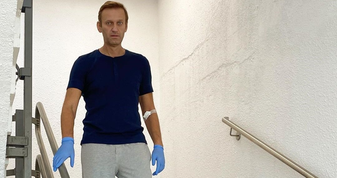 "Сега съм човек, чиито крака треперят, когато слиза или се качва по стълбите",допълва Навални. После се шегува, че преди при вида на стълбище, е щял да стои пред него с глупаво изражение, без да знае какво да прави, а сега, след като се е възстановил, при вида на стълбище вече се сещал, че то служи за качване на горния етаж, но би се сетил също така да вземе асансьора, за да си спести това упражнение.