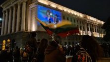 Върху сградата на парламента се прожектират култови изказвания на председателя на парламента Цвета Караянчева и на премиера Бойко Борисов.