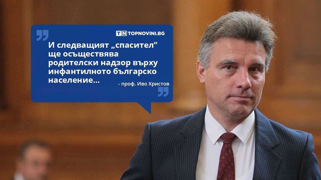 „Очарователна е тази българска черта да гласувате за поредния спасител, без да знаете какво има вътре като съдържание. Както сме подкарали, нас преди 30 и кусур години ни управляваше Тато, след това дойде Командира, след това дойде Дедо, а сега Баце. Предполагам, че следващият трябва да бъде пак някакъв такъв - родителски надзор да осъществява върху инфантилното българско население“. Думи на депутата от БСП проф. Иво Христов във връзка с политическия проект на Слави Трифонов и очакваната подкрепа за него.