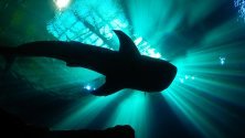 На яркия фон на гигантски аквариум, пълен с акули, манти и други водни обитатели, група изпълнява своите йога практики, предаде Нова телевизия.