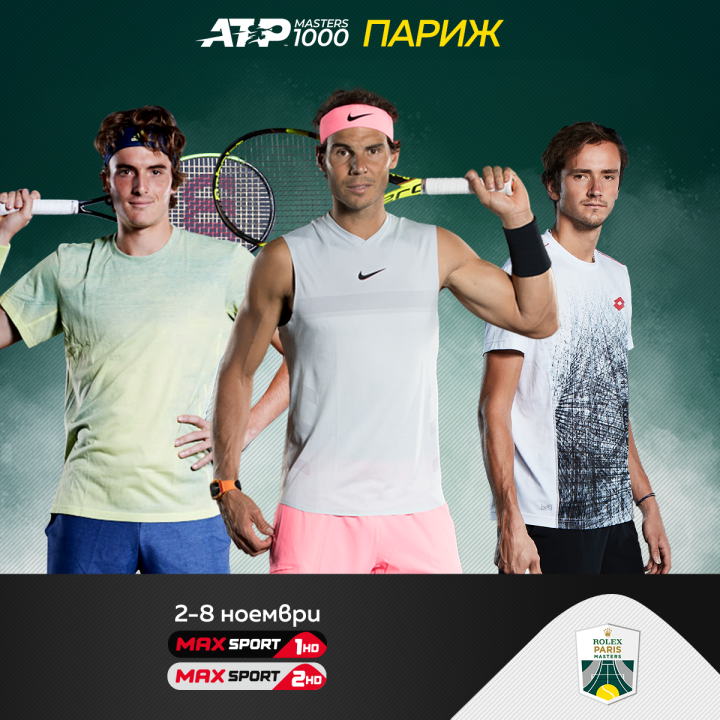 Освен богата на футболни емоции, настоящата седмицата крие много заряд и за тенис феновете. От понеделник в парижката зала „Берси“ започва последния ATP Masters 1000 турнир за сезона. Въпреки че Новак Джокович, Доминик Тийм и Григор Димитров в последния момент се отказаха от участие във френската столица, присъствието на имена като Рафаел Надал, Стефанос Циципас и Даниил Медведев гарантира тенис на световно ниво. Всички най-интересни битки от зала „Берси“ в Париж от понеделник до неделя ще са пряко в ефира на MAX Sport 1 и MAX Sport 2.