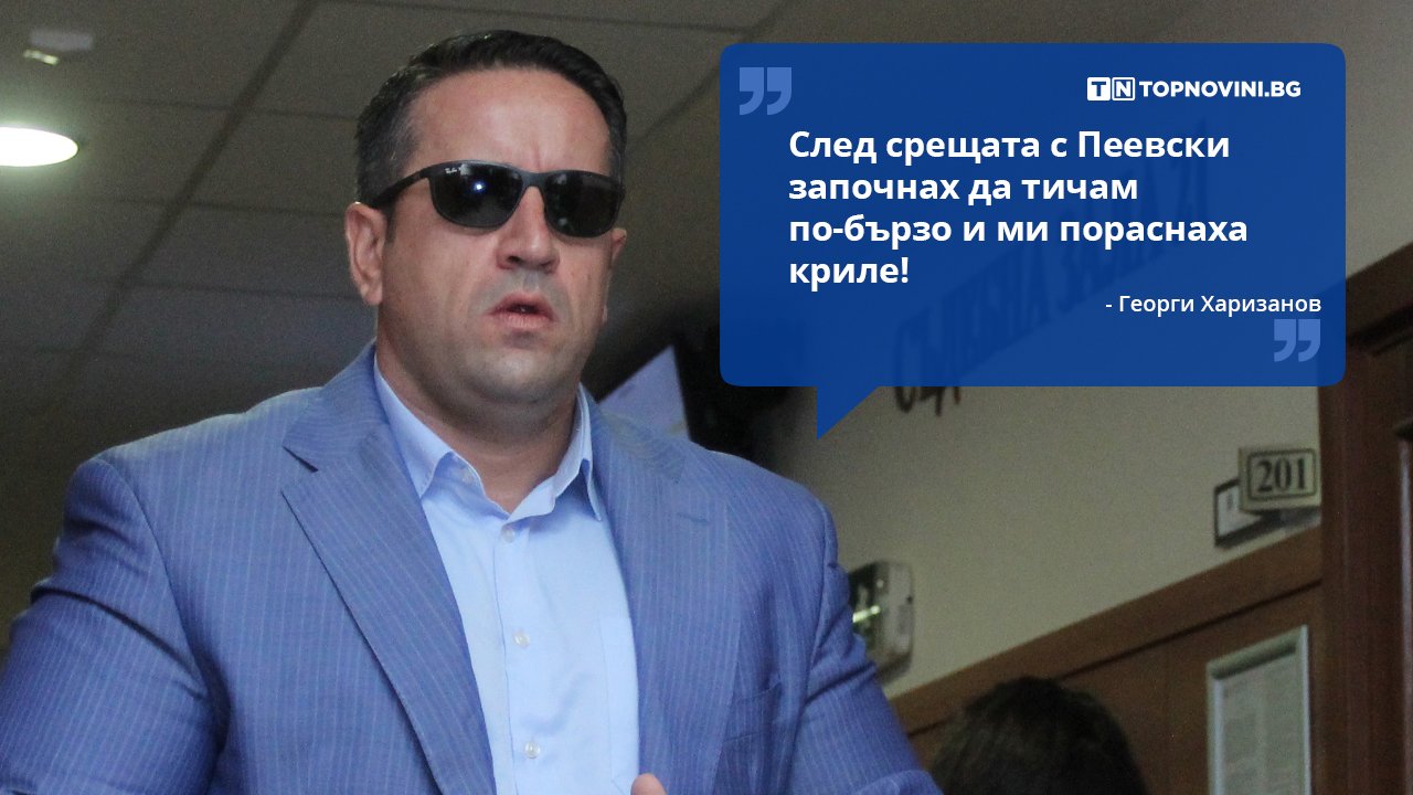 Политическият анализатор и член на ГЕРБ Георги Харизанов потвърди, че се познава лично с депутата Делян Пеевски. "С Делян Пеевски сме се виждали само веднъж, за няколко минути. Запознахме се, разменихме няколко изречения и това беше". Запознанството било в офис от кръга фирми, близки до Делян Пеевски. Самият Харизанов бил там на бизнес среща, свързана с дейността на негова фирма.