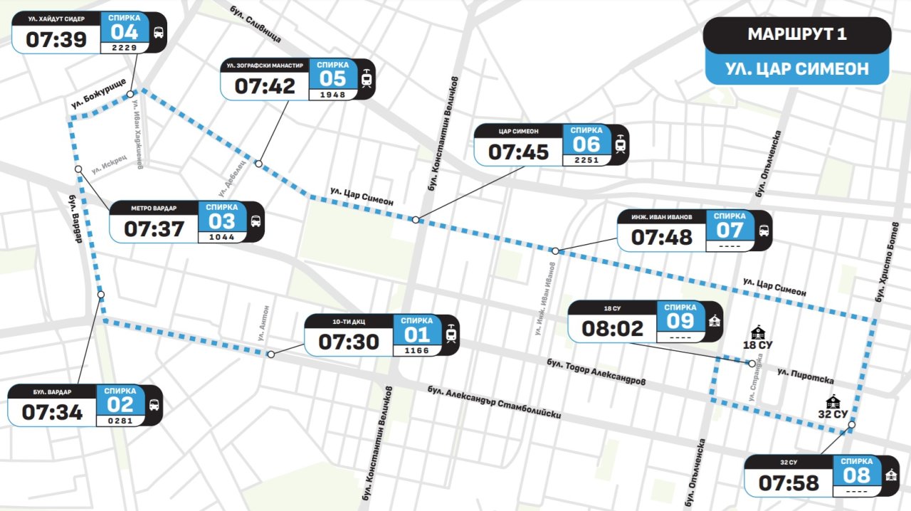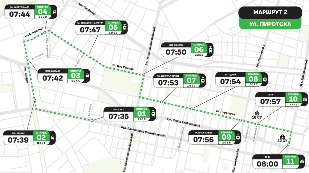 Маршрутите имат фиксирано трасе, което използва спирки на градския транспорт. На базата на предварително допитване до родителите към услугата има заявен интерес от близо 70 деца. Проектираните маршрути са прецизирани и се реализират от направление „Транспорт и градска мобилност“, начело със зам.-кмета Кристиан Кръстев и ОП „Столичен автотранспорт“, съвместно с „Център за градска мобилност“.