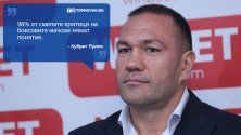 "Не бих могъл да се засегна от коментари на тотално незапознати с бокса като спорт. За мое огромно съжаление в България 98% от тези, които си позволяват смело да критикуват боксовите мачове, нямат понятие, те дори нямат ни най-малка представа как функционират нещата в професионалния бокс", каза най-известният български боксьор Кубрат Пулев в интервю за „Монитор”, 10 дни след загубата от Антъни Джошуа.