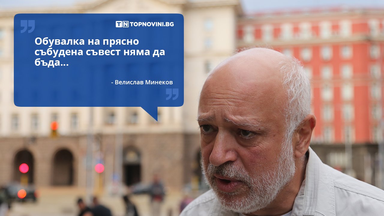 „Да, съединението ражда силата, компромиси са нужни, но компромисът не може да бъде обект за закъсняла консумация от събудени вчера индивиди и службогонци. Компромисът има граници. Това, което направихме, не подарявам никому. Обувалка на прясно събудена съвест няма да бъда. Заставам зад всеки съзнаващ нещастието от открадната от нас държава. И знам, че не съм сам“, коментира проф. Велислав Минеков по повод отсъствието си от консултациите при президента Румен Радев за предстоящия парламентарен вот.