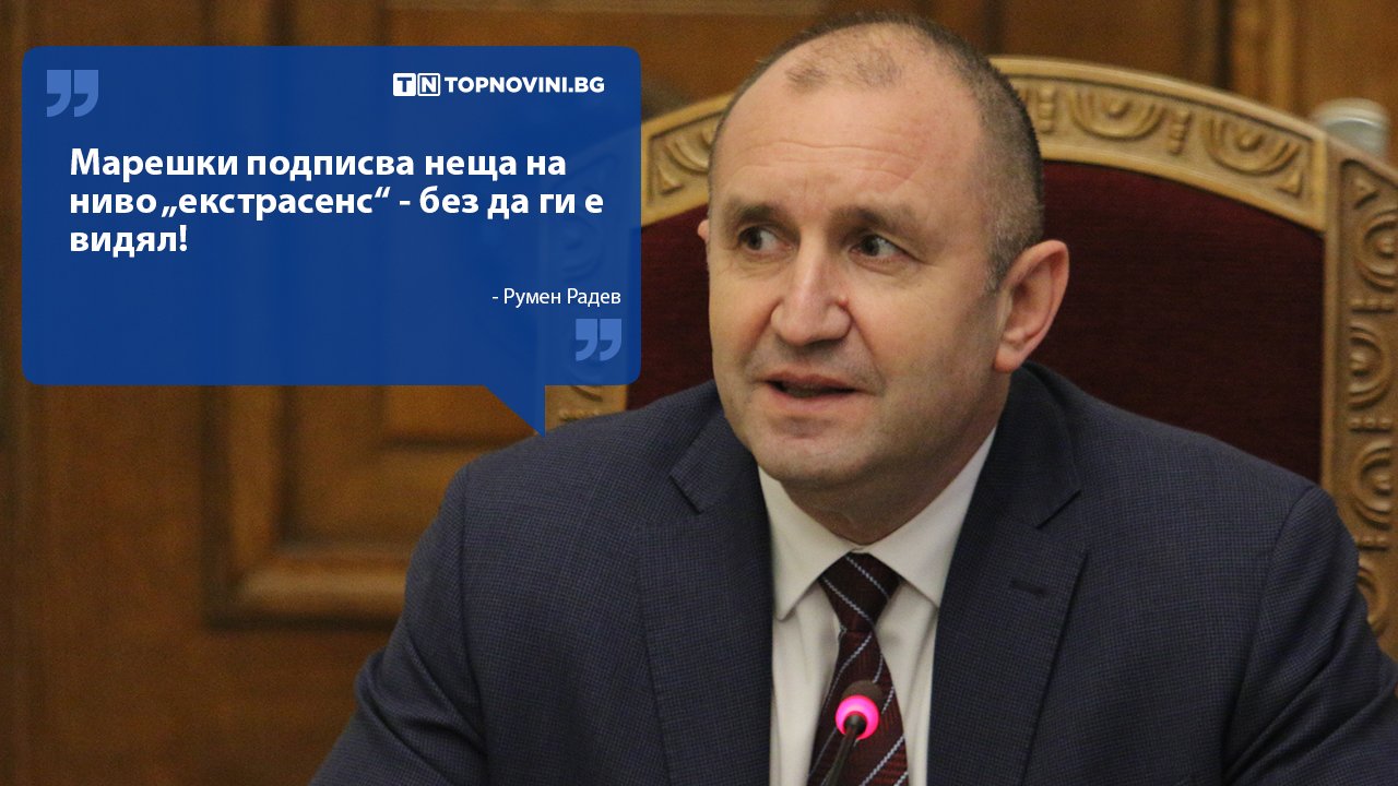 „Некомпетентно и безмислено е да се подпишеш под предложение за Конституция, която не си чел. Вие го направихте. Екзотично е да подкрепяте здравни мерки, които не сте виждали и не сте ги чел, защото още никъде ги няма. Но Вие го правите - декларирате, че сте готови да подкрепите нещо, което не съществува към момента...". С тези думи президентът Румен Радев отговори на критиките на лидера на ПП „Воля" Веселин Марешки, че организираните от него консултации за провеждането на парламентарните избори са безмислени.