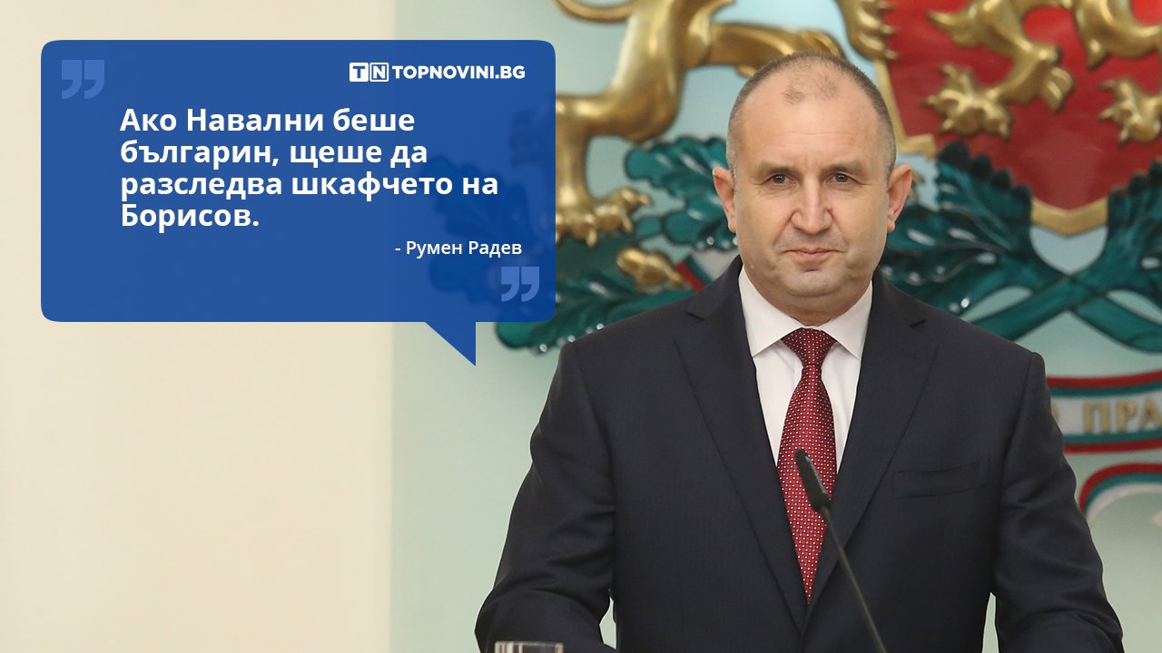 „Ако Навални беше българин, щеше да разследва шкафчето на Борисов, а той щеше да се опита да го изгори, както заплашва Елена Йончева“, заяви държавният глава Румен Радев по повод критиките на премиера Бойко Борисов, че той не е излязъл с позиция относно задържането на опозиционера от руските власти.