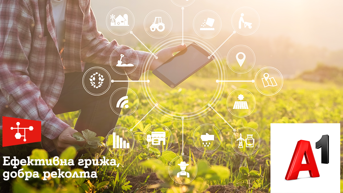 А1 разширява портфолиото си от бизнес услуги с решение в сферата на „Интернет на нещата“, което помага за повишаване на количеството и качеството на добивите в земеделието. Решението на А1 за интелигентно земеделие се отличава от алтернативните варианти за дистанционно наблюдение на полето със своята уникална комбинация от измервателно оборудване, интегрирано в облака. Така агро производителите могат да разполагат с коректни и надеждни данни, така че оптимално да планират напояването и пръскането на растенията. По този начин се спестяват време и човешки ресурси и се намаляват разходите на единица продукция за вода и торове. Проследяването на параметрите на климатичните условия и почвата в обработваемите полета се прави в реално време чрез интелигентни метеорологични станции. Така технологиите улесняват работата на земеделските стопани и се повишават възможностите за качествена продукция.