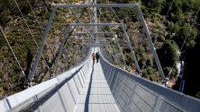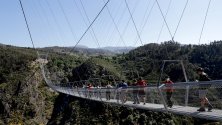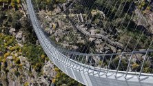 В Северна Португалия ще бъде открит най-дългият окачен пешеходен мост в света. Съоръжението виси на тежки стоманени кабели, нанизани между V-образни бетонни кули и минава 516 метра през каньон, на височина 175 метра, предаде АФП.