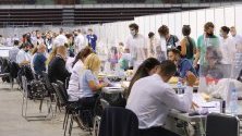Междувременно вече започна предаването на изборните книжа в зала „Арена Армеец”. Около 200 представители на секции са на място. Обстановката към момента е спокойна. Документите се обработват бързо.