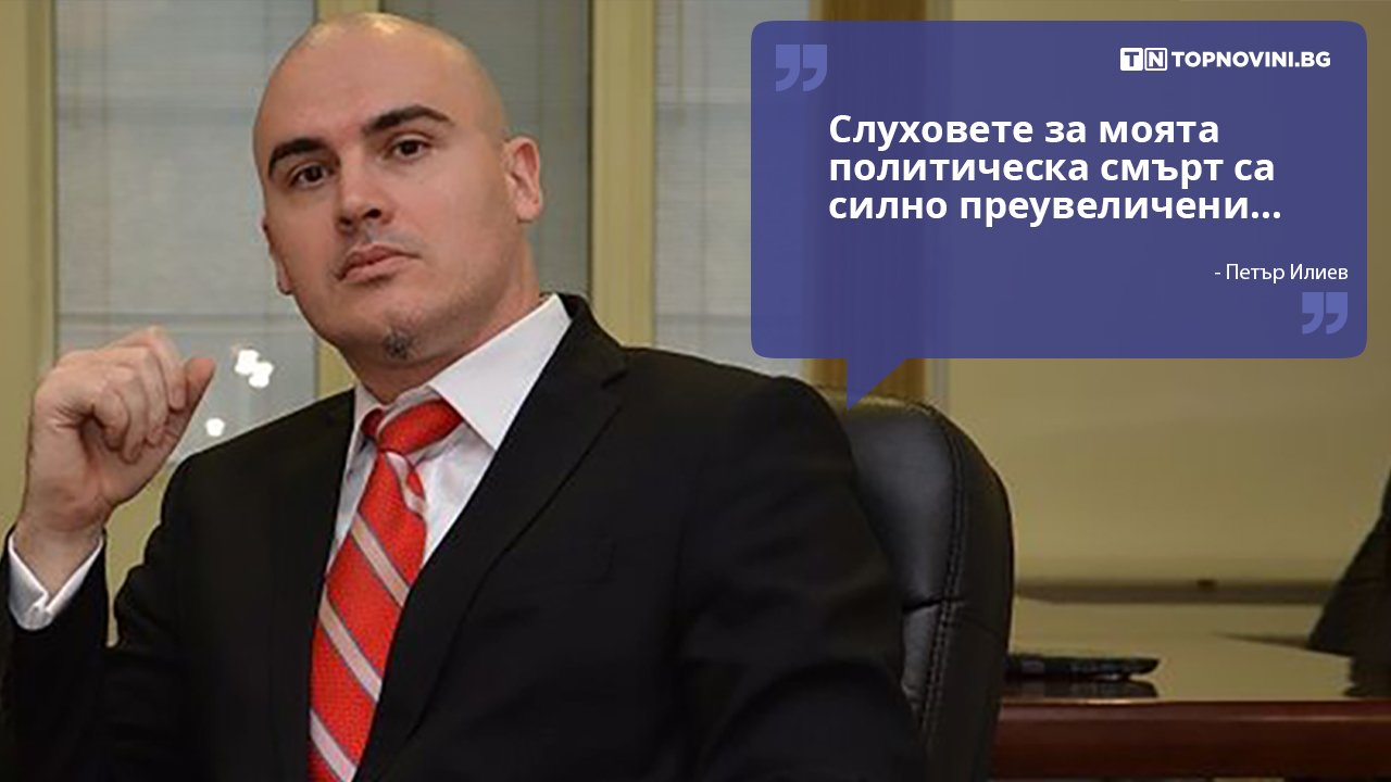 „Слуховете за моята политическа смърт са преувеличени, както винаги“, заяви в Twitter адвокатът и почетен консул на Барбадос Петър Илиев. Той бе предложен за министър на правосъдието в първия проектокабинет на „Има такъв народ“. След това името му се спрягаше за премиер на втория, но в последния момент бе номиниран за вицепремиер и министър на вътрешните работи.