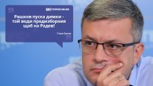 „Той е един фалшив герой, който се представя за пострадал от Прехода, а има 19 имота", продължи с констатациите бившият депутат... Излиза, хвърля димка. Това са долнопробни ченгесарски димки и номера, гледахме ги на миналите избори“, добави той във връзка с думите на Рашков от по-рано днес, че ще разследва докрай всичко, построено от Борисов и партията му.