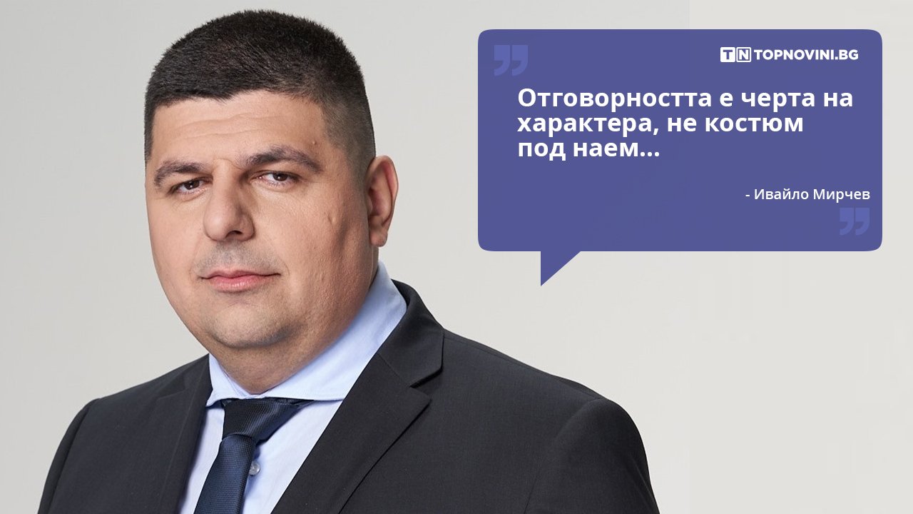 „Отговорността е черта на характера, не е костюм под наем. Няма как хем да носиш отговорност, хем да не е твоя. И все пак днес отговорността за кандидатурата на един плагиат се оказа ничия“, написа във Facebook бившият депутат от „Демократична България“ Ивайло Мирчев относно заключението на етичната комисия на Софийския университет, че в книгата на Петър Илиев „Компетенцията на Народното събрание“ са открити „данни за плагиатство“ и последвалата реакция на лидера на „Има такъв народ“ Слави Трифонов. Тогава той обясни, че казусът се е случил много отдавна и много преди да съществува „Има такъв народ“.