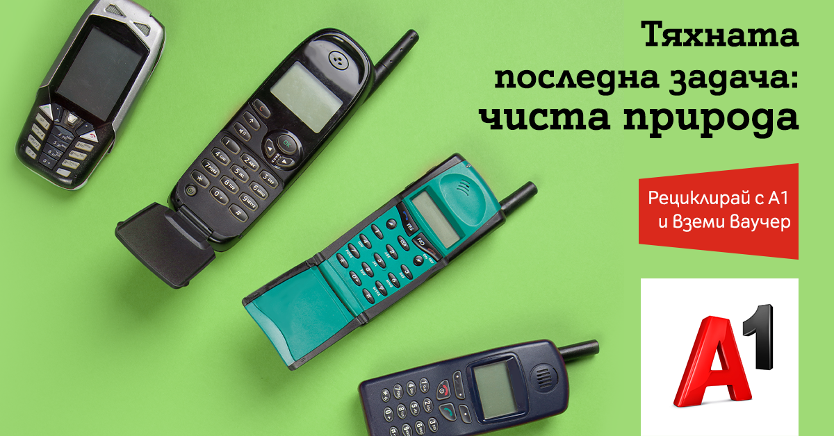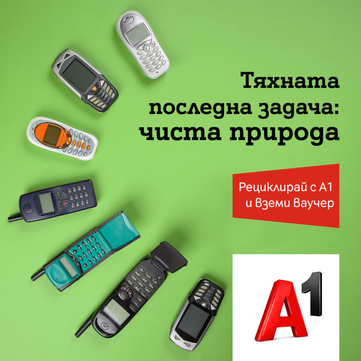 А1 стартира нова еко инициатива, която има за цел да намали обема на електронните отпадъци. Компанията предлага възможност на всеки потребител да върне стар телефон или таблет в магазин на А1, които ще бъдат рециклирани. За да стимулира потребителите, А1 ще предоставя ваучер на стойност 20 лева, който може да се използва за закупуването на ново устройство от магазина или сайта на компанията.