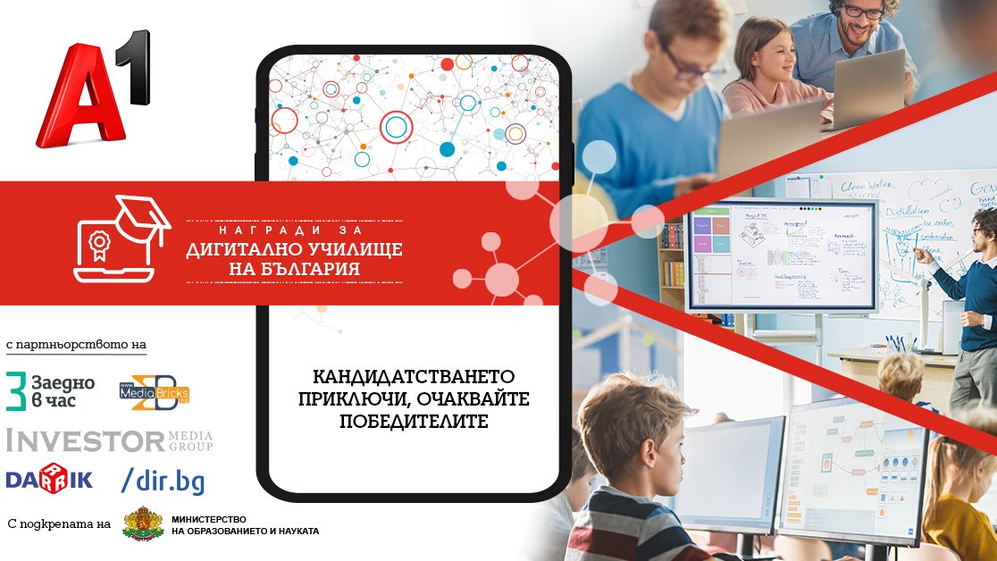 Приключи първият етап от конкурса на А1 „Дигитално училище на България“. Инициативата цели да ускори процеса по дигитализация в училищната среда, като поощри най-иновативните практики в тази посока и вдъхнови и други учебни заведения да направят своите първи стъпки във въвеждането на новите технологии в час. По време на кандидатстването организаторите получиха над 120 проекта от различни малки и големи населени места в цялата страна.