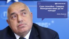 „Тази нощ за първи път спах спокойно, защото вчера разбрах, че братският народ на Северна Македония няма да напада България с подарените танкове и няма да има териториални претенции. Това е голяма новина. Пред мен толкова години македонски политик не може да ми говори, че няма да имат териториални претенции към България. Спете спокойно - Банско остава български, ще ходите на ски“. Така лидерът на ГЕРБ Бойко Борисов обобщи резултата от визитата на Кирил Петков в Северна Македония.