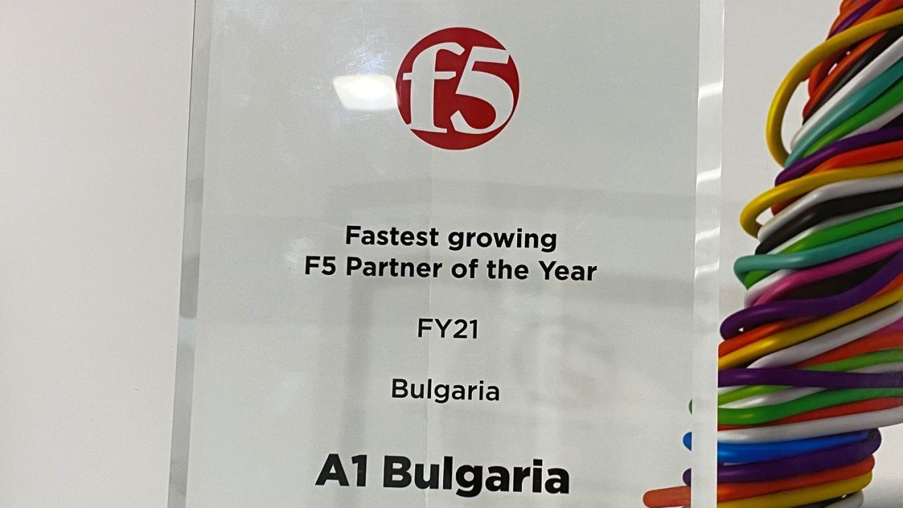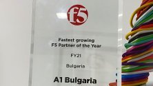 А1 България беше отличена от американската технологична компания f5 като партньорът с най-бърз растеж през 2021 г. Признанието е в резултат на усилията на А1 в подкрепа на корпоративните клиенти с решения за надеждна защита на техните уебсайтове и приложения чрез високотехнологичната услуга, базирана на продукт на f5.