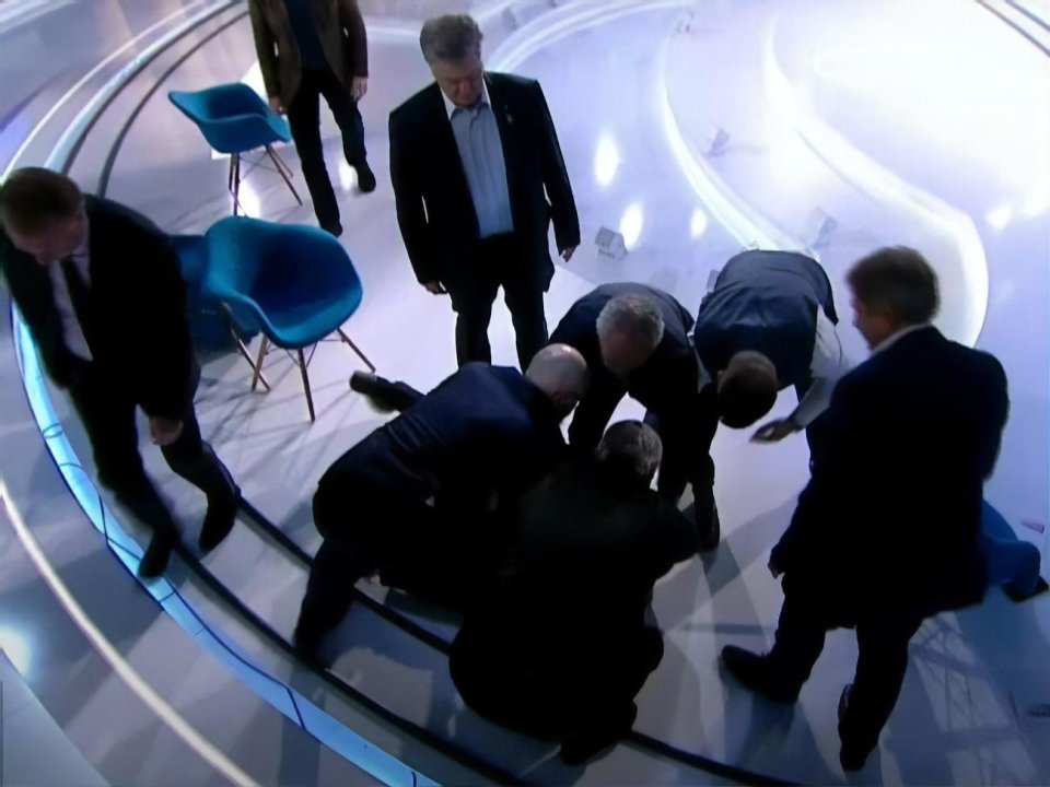 Гостите в студиото, сред които и бившият президент Петро Порошенко, обсъждаха евентуалната руска инвазия. Бутусов нарече Шуфрич „предател“, след като той отказа да осъди действията на Владимир Путин. Тогава започна и същинският бой.