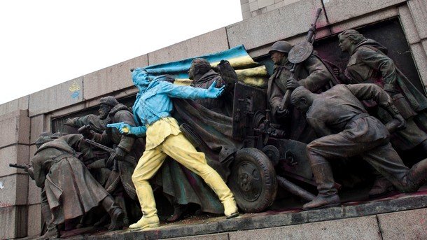У нас традиционно, броени дни след началото на войната Паметникът на Съветската армия се превърна в социалнозначимо платно. Той бе оцветен в багрите на украинския флаг, а около него се четяха надписите: „Не на войната“, „Окупатори“, „Убийци“ и „Слава на Украйна“.