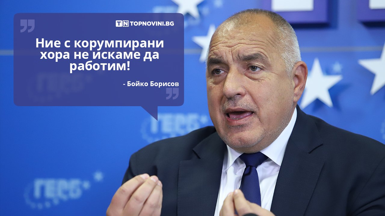 „Омазани до ушите с корупция хора. Ние с корумпирани хора не искаме да работим“. Това каза лидерът на ГЕРБ Бойко Борисов по адрес на управляващите.