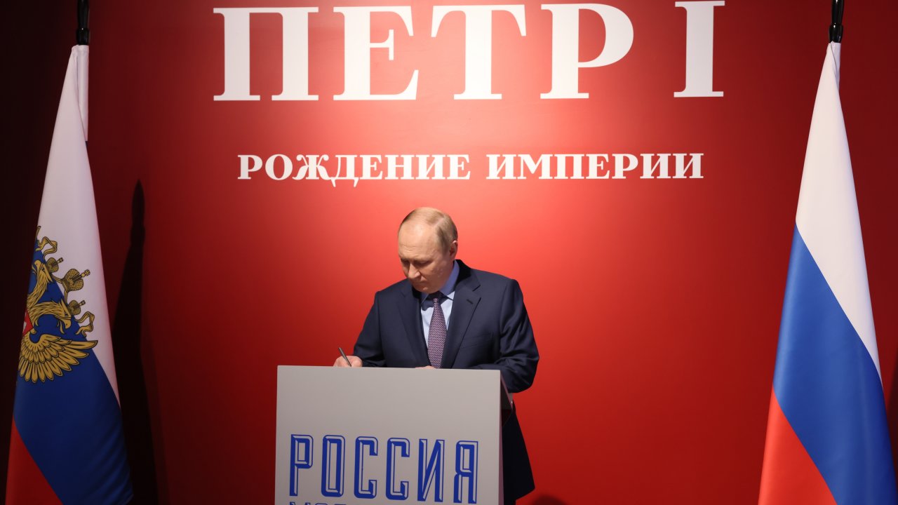 Пред журналисти по време на посещение на изложбата Путин сравни политиката си с тази на Петър Велики, когато той се е сражавал с Швеция и Финландия. „Ние посетихме експозиция, посветена на 350-ата годишнина от рождението на Петър Велики. Учудващо е, но почти нищо не се е променило. Петър Велики води Северната война в продължение на 21 години. Човек има чувството, че сражавайки се със Швеция, той е завземал нещо. Но той не е завземал нещо, а си е връщал нещо“, заяви Путин.