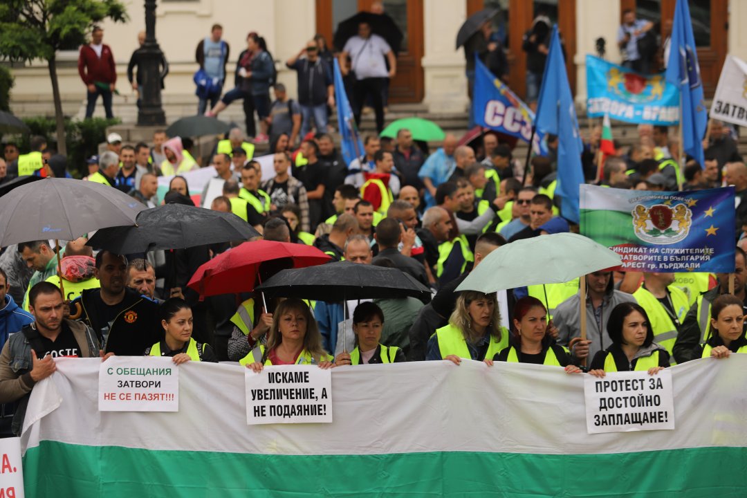 Полицаи и надзиратели в затворите в страната от двата най-големи синдикати в сектор „Сигурност“ - Синдикатът на служителите в затворите (ССЗБ) и Синдикалната федерация на служителите в МВР (СФСМВР), излязоха на национален протест с искане за по-добри заплати и условия на работа. Те настояват за поне 25 на сто увеличение на възнагражденията им.