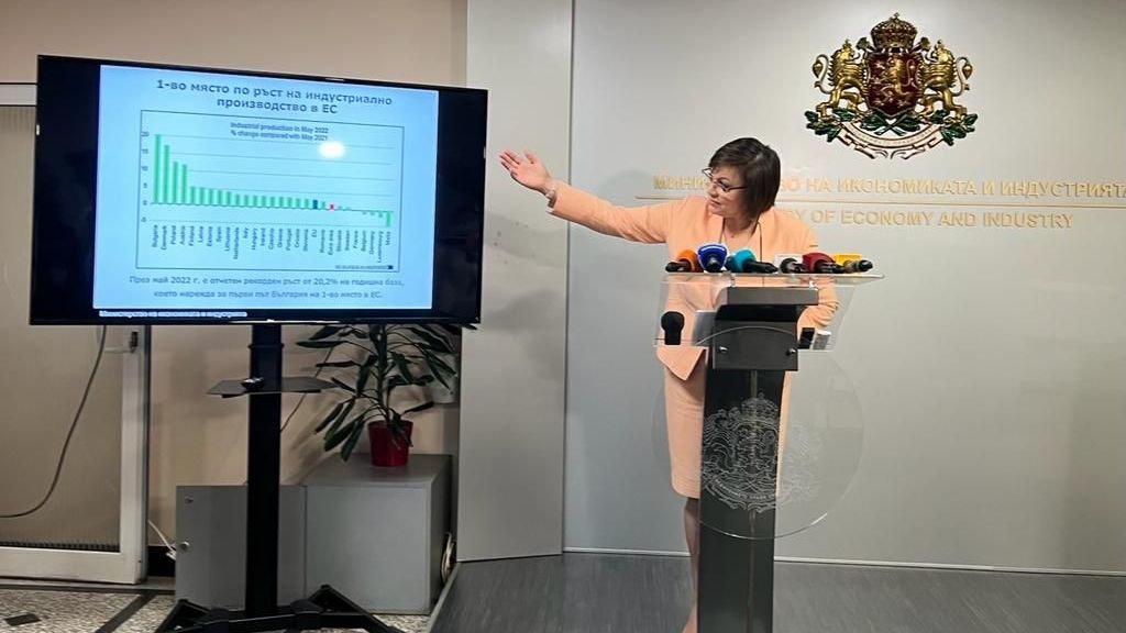 Вчера Европейската статистическа агенция „Евростат“ излезе с данни, според които за първи път България се нарежда на първо място в ЕС по ръст на индустриално производство. Рекорден ръст от 20,02%, вицепремиерът и министър на икономиката и индустрията в оставка Корнелия Нинова.