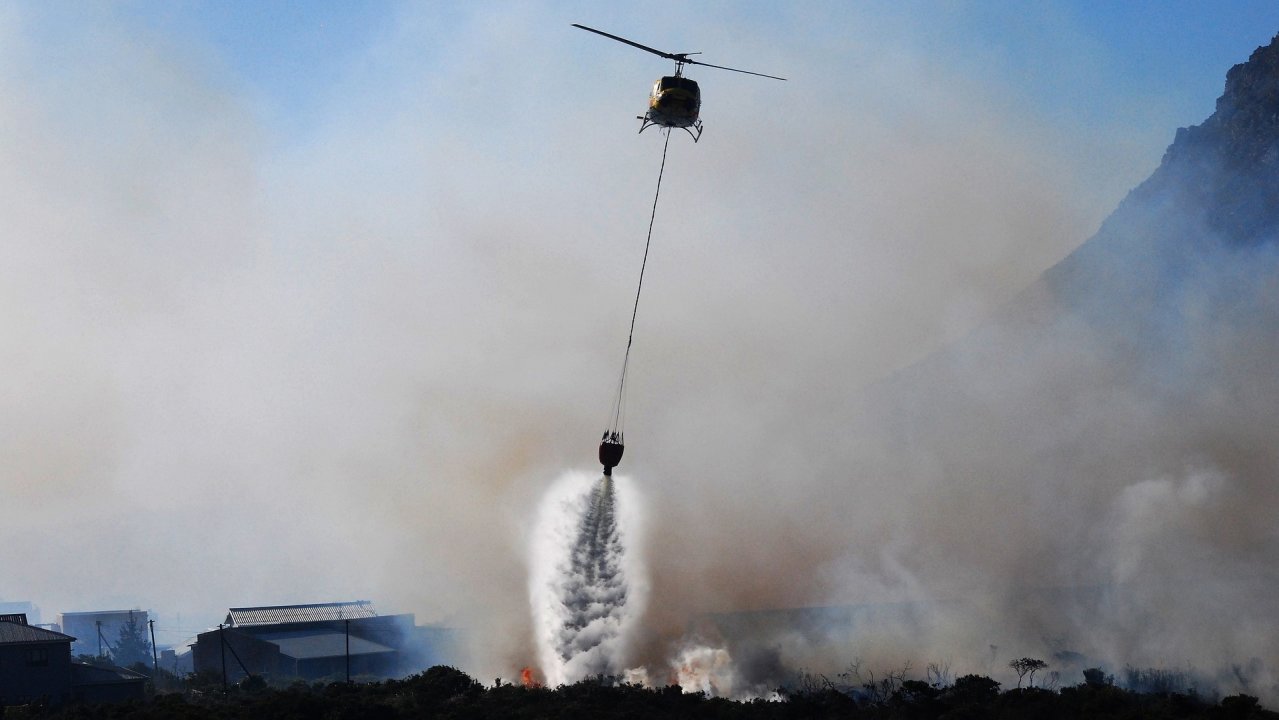 Вятърът допълнително затруднява работата по овладяването на огъня.