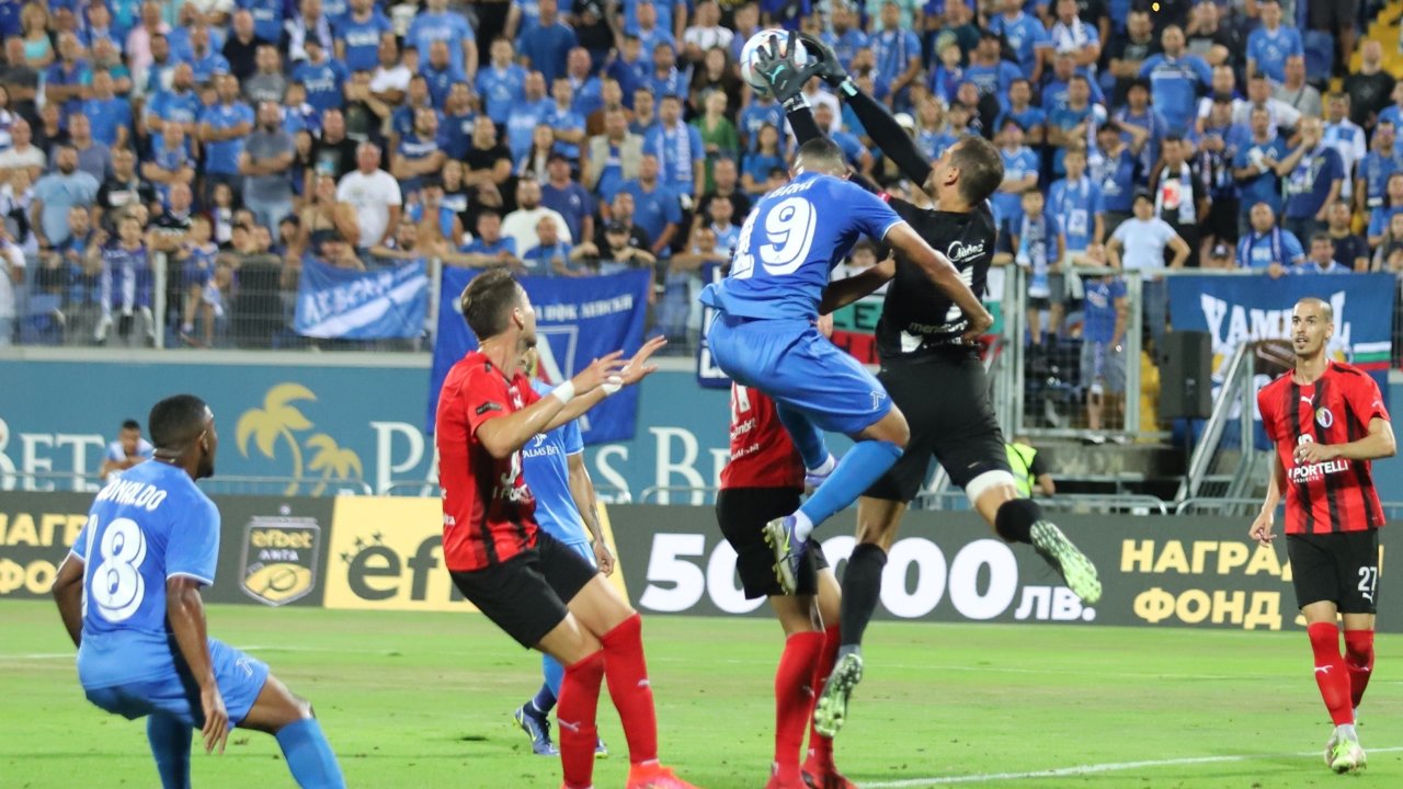 След само 90 секунди игра Левски можеше да излезе напред в резултата на стадион „Георги Аспарухов“. Уелтън проби опасно по десния фланг и центрира остро в наказателното поле към Роналдо, който обаче не успя да засече топката във вратата на Хамрун.