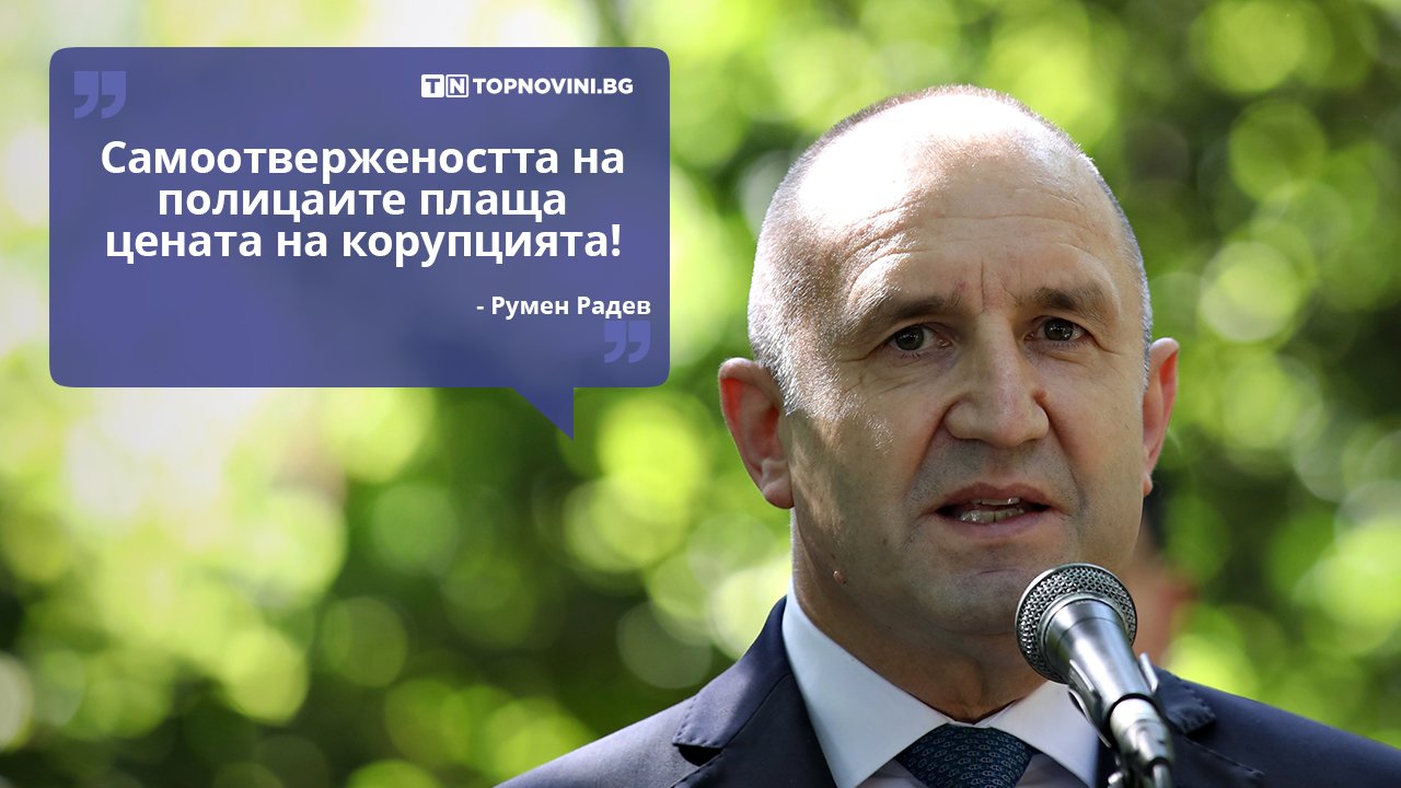 Самоотвержеността на полицаите плаща цената на корупцията. Това заяви президентът Румен Радев в Бургас, където присъства на поклонението пред двамата загинали след гонка с автобус с мигранти полицаи Йордан Илиев и Атанас Градев.