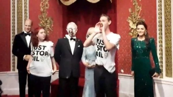 Само десет дни след като две активистки, подкрепящи инициативата Just Stop Oil, заляха с доматена супа „Слънчогледите“ на Ван Гог и ден, след като техни немски съмишленици от „Последно поколение“ намазаха с картофено пюре „Купи сено“ на Клод Моне, в мишена се превърна и новокоронованият крал на Великобритания. Или по-точно - восъчната фигура на крал Чарлз III в музея „Мадам Тюсо“ в Лондон, изложена по времето, когато той бе още принц.