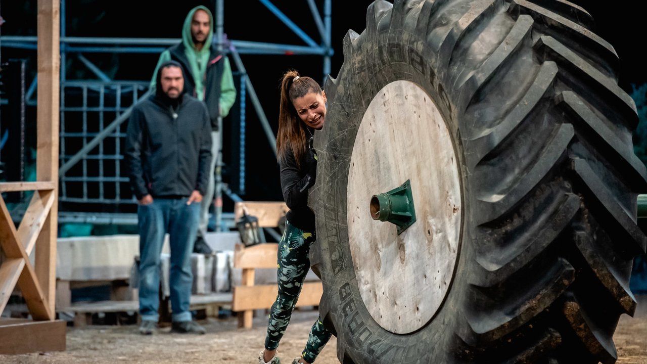В първите битки Камелия кова по-сръчно и цепи по-технично, и поведе в резултата. Непримиримите съпернички премериха сили също в търкалянето на 500-килограмова гума и в скоростно рязане на греда, а хандбалистката отново се справи по-бързо и спечели дуела с 9 на 1.